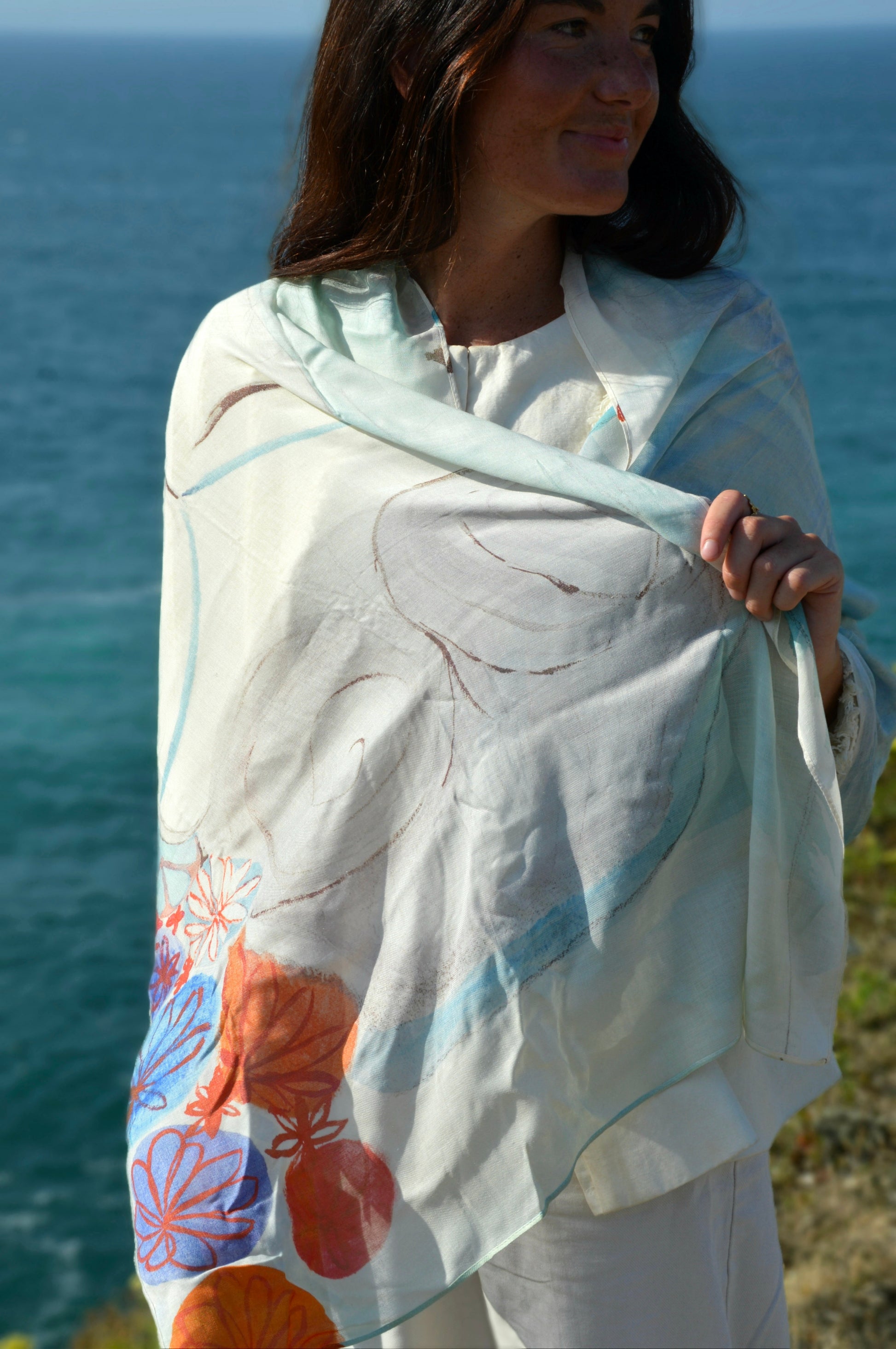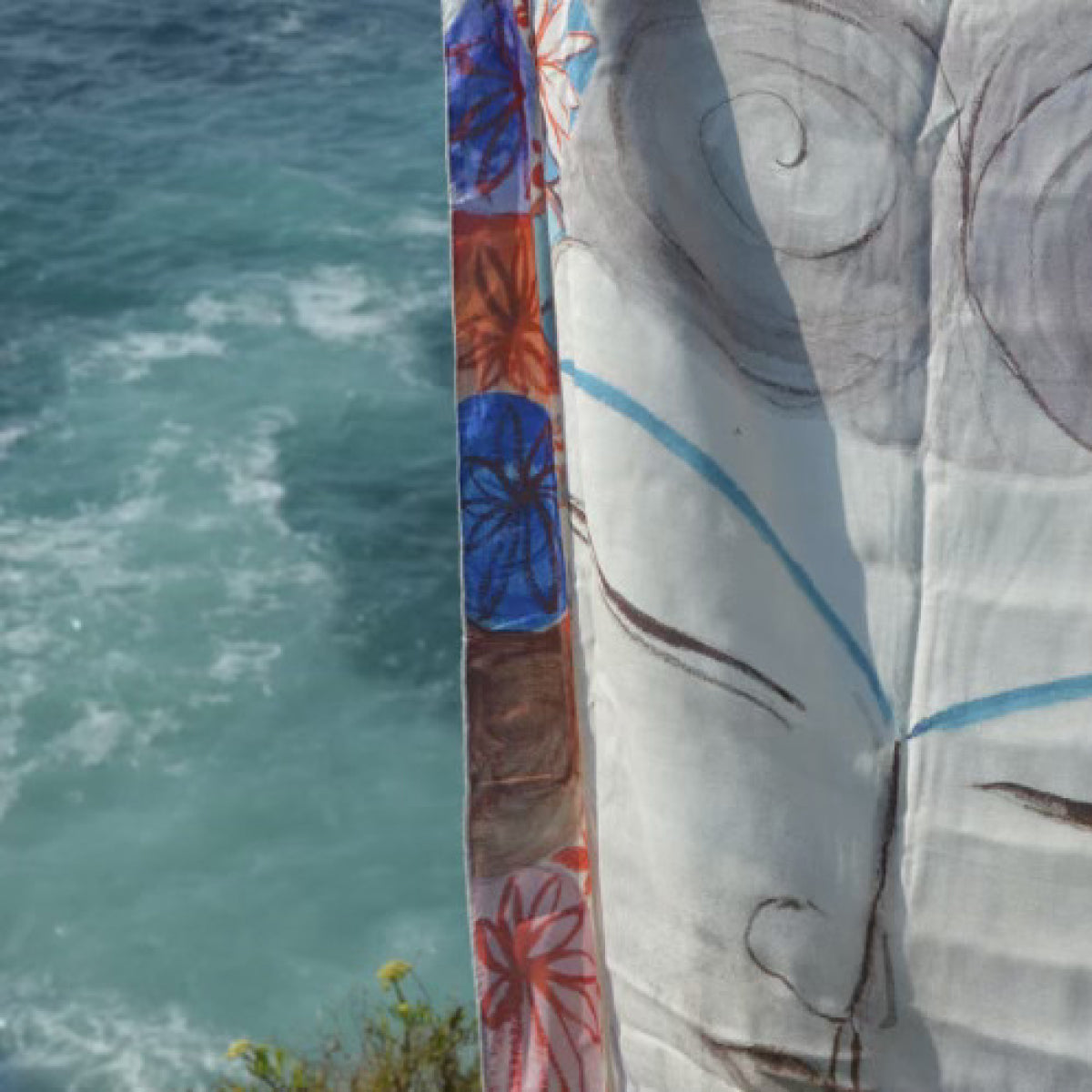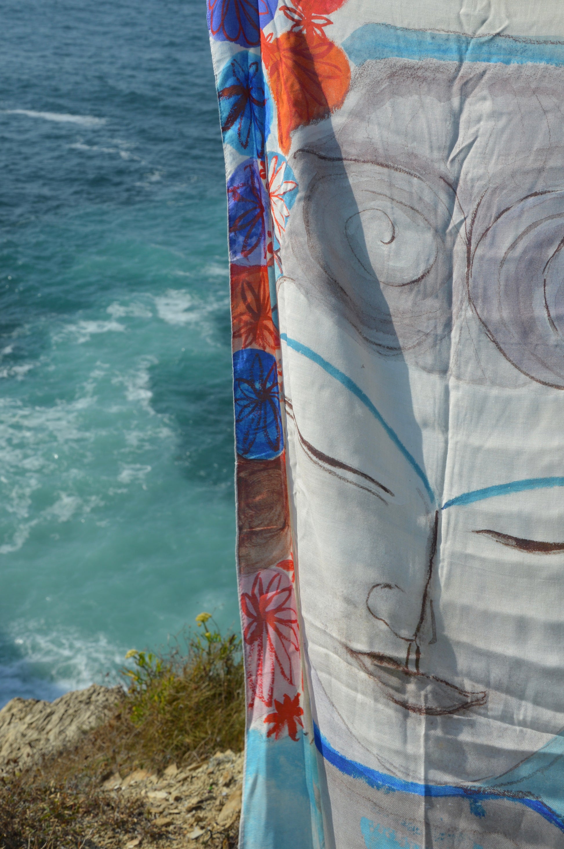 El pañuelo Mogao representa algunas partes del cuerpo de Buda :su rostro, torso y manos. En la cara quise reflejar la serenidad y también que tuviese una sonrisa genuina, amable y auténtica.